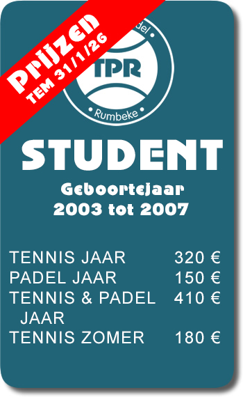 Je kan ook lid worden van TPR zonder abonnement, bijvoorbeeld om tornooien te spelen. Dit kost €45 en kan je aanvragen via mail naar efrem@tprumbeke.be.Uitleg abonnementen