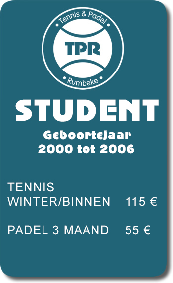 Je kan ook lid worden van TPR zonder abonnement, bijvoorbeeld om tornooien te spelen. Dit kost €45 en kan je aanvragen via mail naar efrem@tprumbeke.be.Uitleg abonnementen