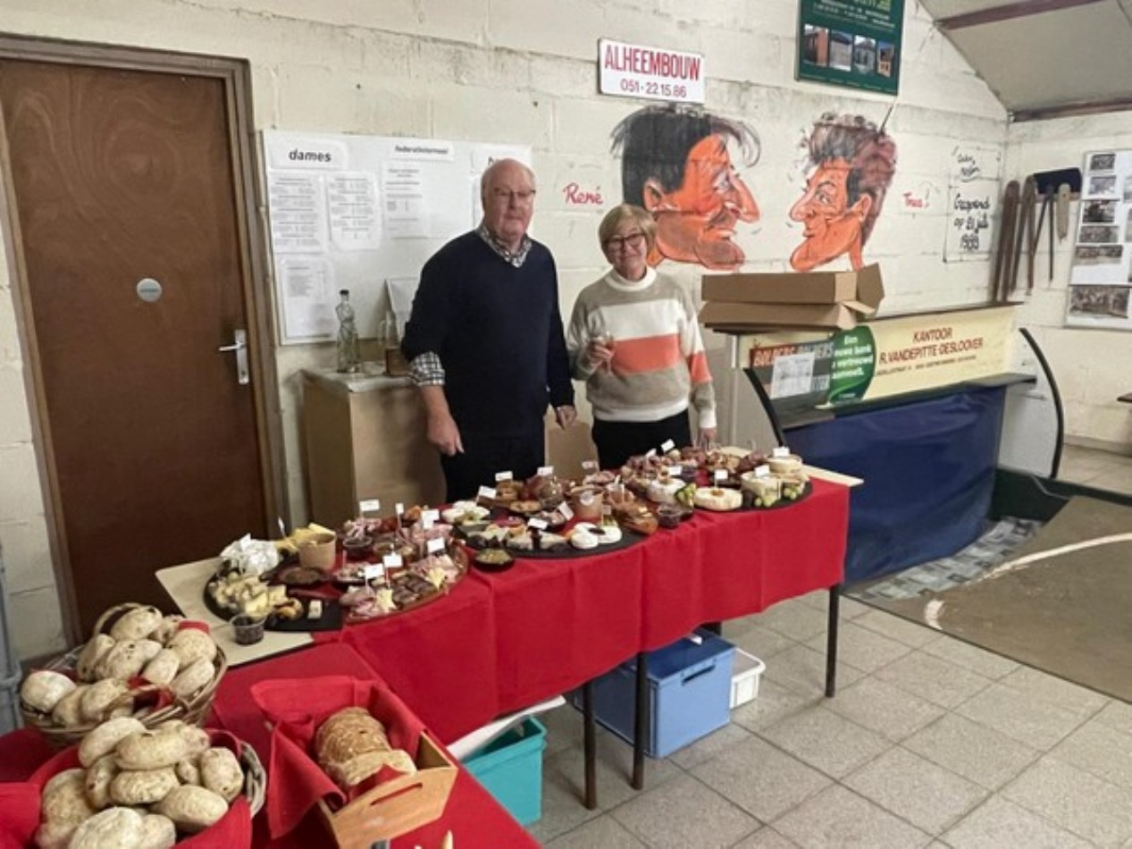 Na al dat sportieve geweld werd de namiddag afgesloten met een royale Kasperplank (klaargemaakt door schoondochter Myriam & Stefaan). Er werd minstens even hard gesmuld van het lekkers als van de bollen die eerder over de baan rolden — een perfecte afsluiter!